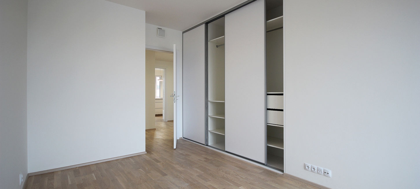 Vestavěné šatní skříně na míru v předsíni i v obou ložnicích.